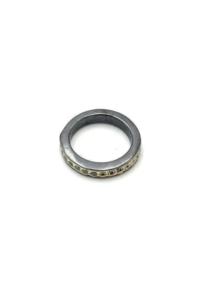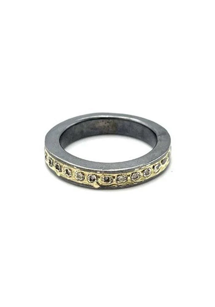 Bague fines en argent noir et or jaune 18 pavée de 10 diamants blancs.