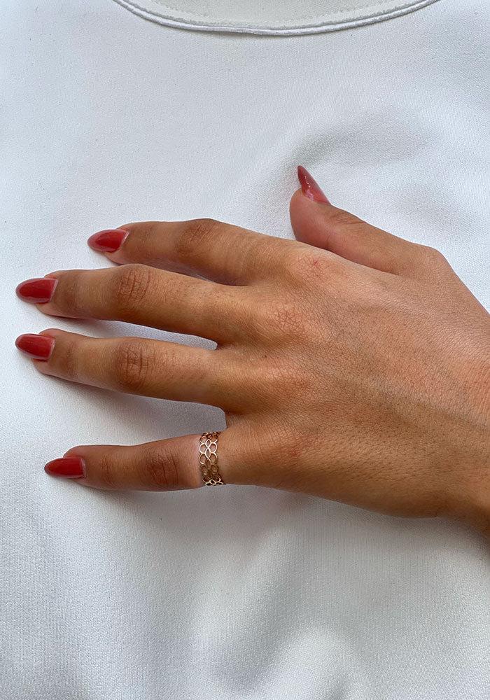 Bague Bea, anneau large en plaqué or avec motifs ovales ajourés. Caractéristiques : Matériaux : Plaqué Or Couleur : Doré
