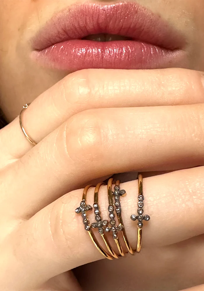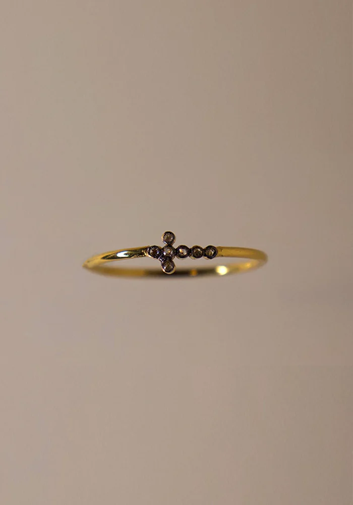 Bague croix allongée avec 7 diamants sur un anneau en vermeil. Caractéristiques : Matière : Vermeil Pierres : Diamants Série limitée