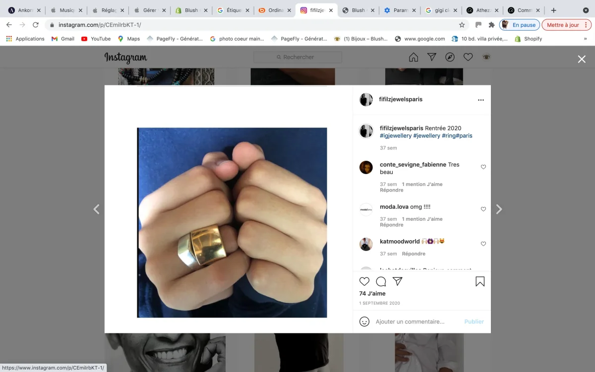 Promo ! Bague Georges Plaqué Or175,00 € Le prix initial était : 175,00 €.84,00 €Le prix actuel est : 84,00 €. Taille Bague Choisir une option52545658Effacer quantité de Bague Georges Plaqué Or Ajouter au panier UGS : ND Catégorie : Bijoux Description Informations complémentaires Avis (0) Description Caractéristiques : Matière : Plaqué Or Informations complémentaires Taille Bague 52, 54, 56, 58 Avis Il n’y a pas encore d’avis. Soyez le premier à laisser votre avis sur “Bague Georges Plaqué Or” Annuler la réponseVotre adresse e-mail ne sera pas publiée. Les champs obligatoires sont indiqués avec *Votre note * Évaluation... Parfait Bon Moyen Pas mal Très mauvais Votre avis *Nom * E-mail * Enregistrer mon nom, mon e-mail et mon site dans le navigateur pour mon prochain commentaire. Produits similaires Promo ! Bracelet Raffia Small Beads Sand 149,00 € Le prix initial était : 149,00 €.119,20 €Le prix actuel est : 119,20 €. Ajouter au panier Promo ! Collier Joy 100,00 € Le prix initial était : 100,00 €.80,00 €Le prix actuel est : 80,00 €. Ajouter au panier Collier Classique Gigi Or Rose Et Résines Bleu Nuit 50cm 199,99 € Ajouter au panier Promo ! Bracelet Classique Gigi Or Rose Et Résines Émeraude 15cm 199,99 € Le prix initial était : 199,99 €.188,00 €Le prix actuel est : 188,00 €. Ajouter au panier