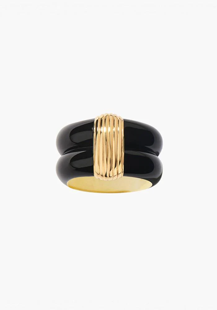 - Détail strié et intérieur de la bague dorés à l’or jaune