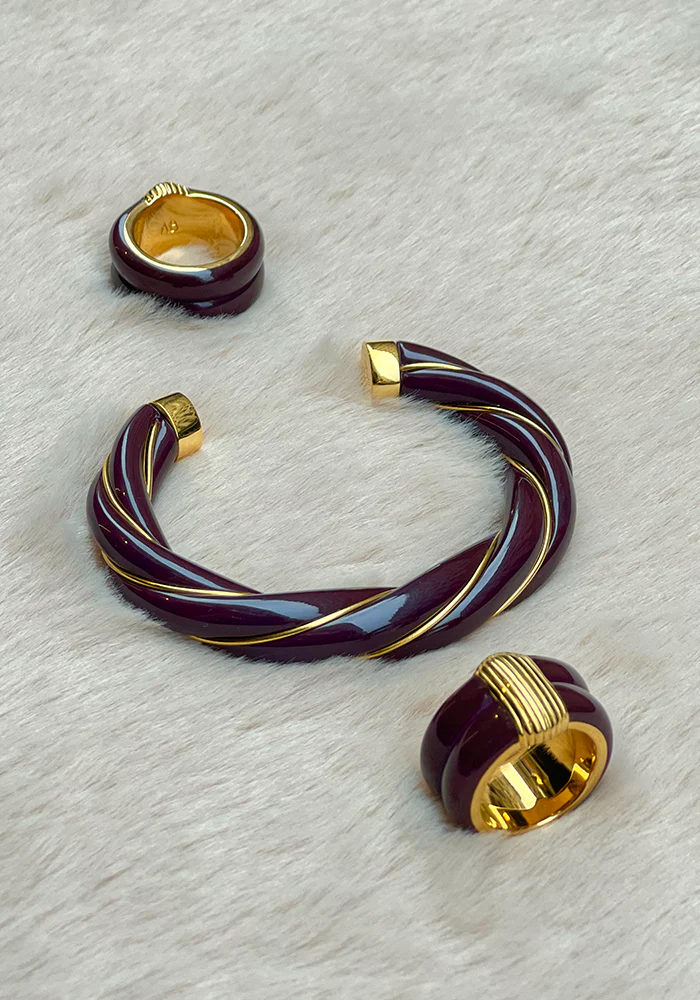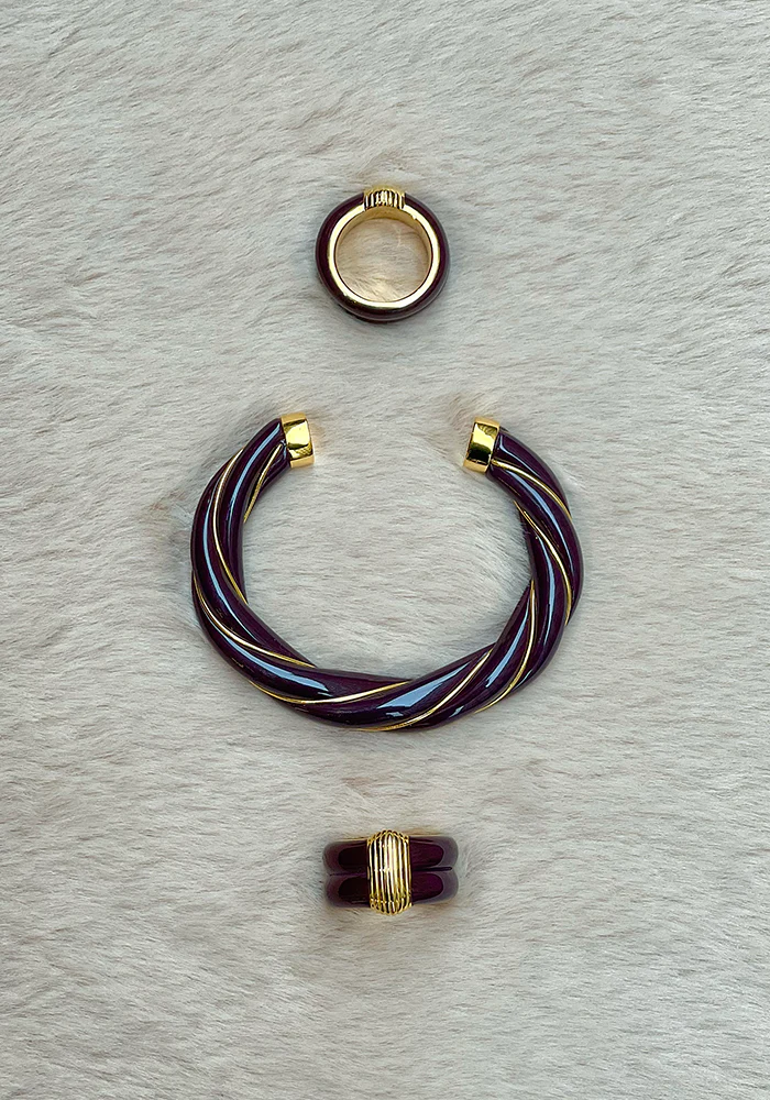 Matériaux : Laiton recouvert d’or jaune 18 carats et résine