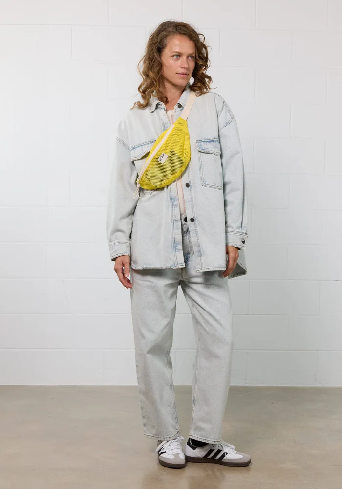 Banane Ray en tissu avec une finition en maille jaune avec des détails en tissu beige. Caractéristiques : Dimensions : 32 x 16 x 8 cm Longueur de la sangle ajustable : 110 cm Composition durable : Tissu 100% recyclé à partir de bouteilles en plastique post-consommation Sangle en polyester recyclé à 100% Finition déperlante […]