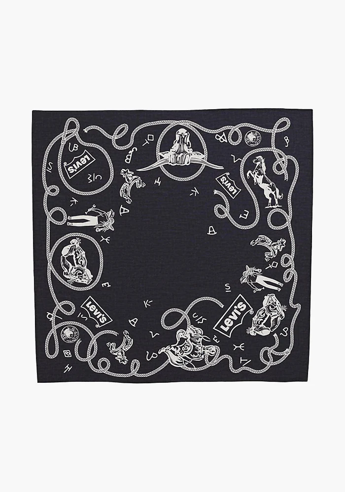 Bandana Ranchers carré en coton avec un motif cowboys sur un fond noir.