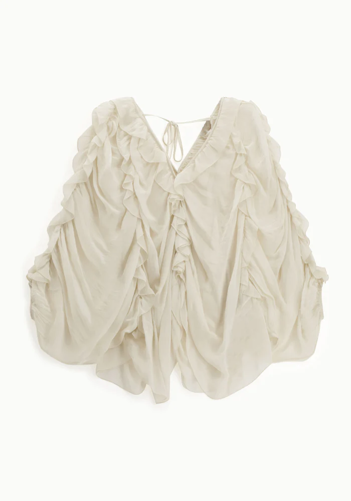 Blouse Fluide À Volants Beige