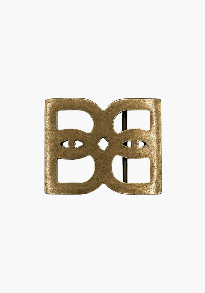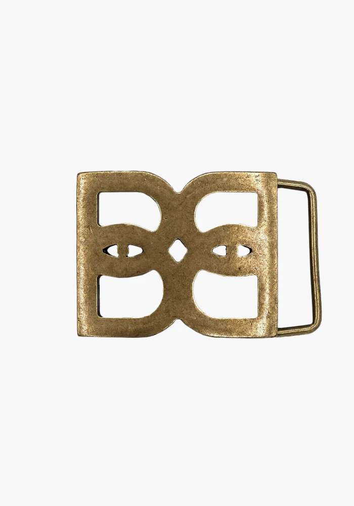 Boucle de ceinture Nevada en laiton doré veilli dans le monogramme du logo Blush.