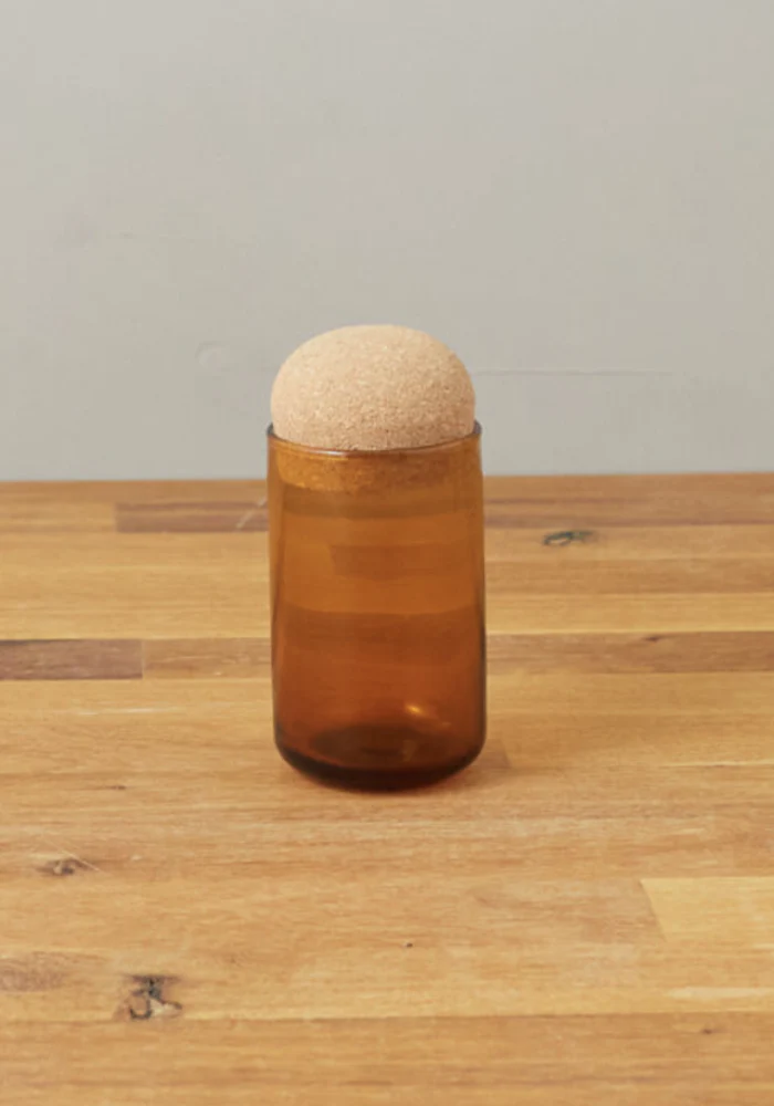 Bocal en verre marron Evia et bouchon rond en liège