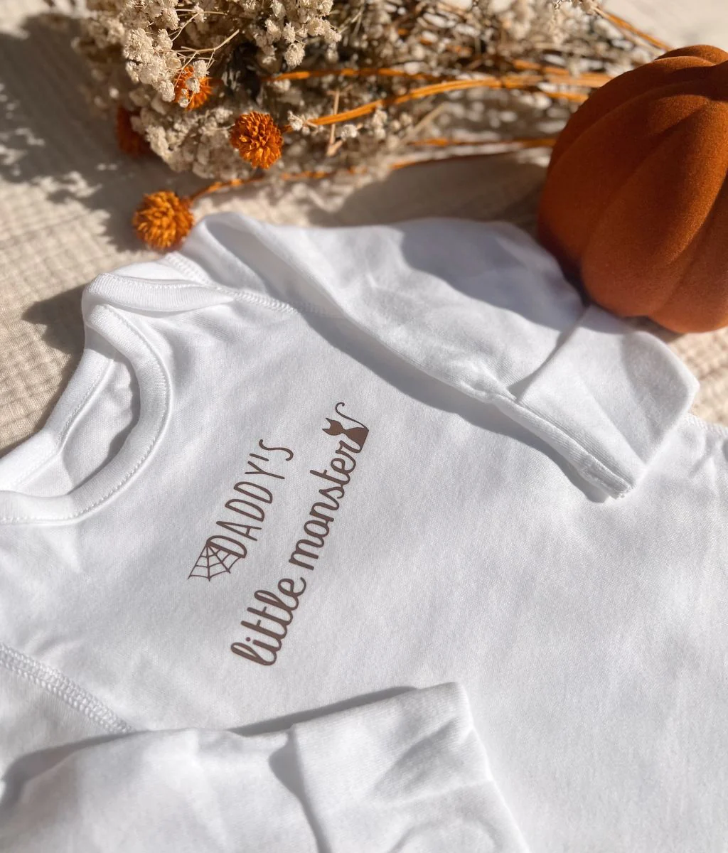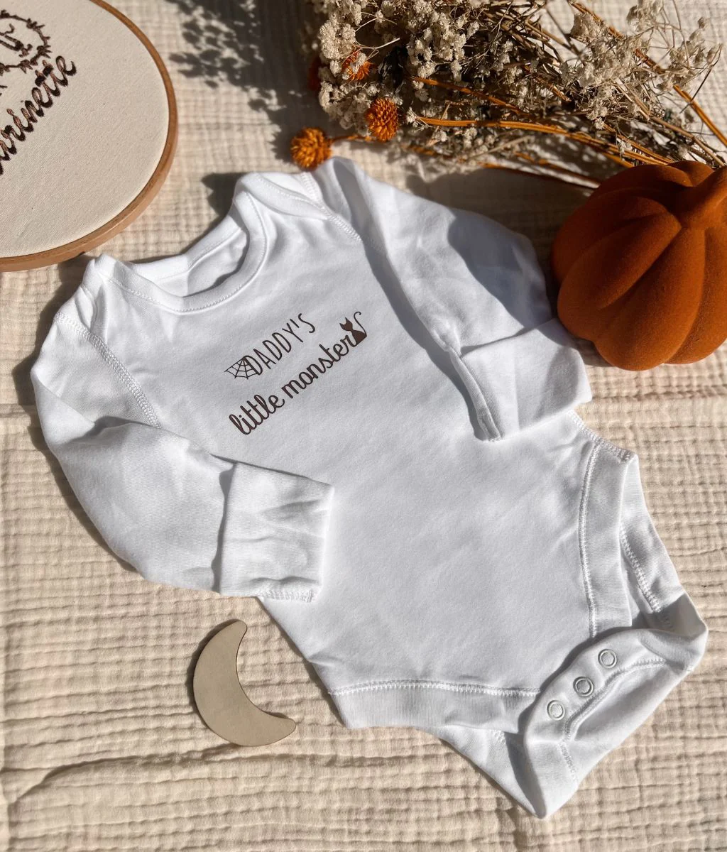 Ce body pour bébé est un déguisement parfait pour Halloween. Il arbore une jolie inscription « Mommy’s Little Monster » ou « Daddy’s Little Monster » au choix. Grâce à son tissu en coton biologique, il est tout doux et très agréable à porter. Disponible avec les manches courtes ou longues.