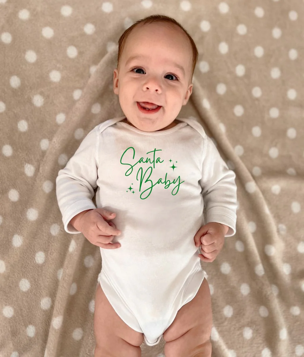 Le body tout doux parfait pour le premier Noël de votre enfant avec son inscription « Santa Baby ». C’est une jolie tenue douce et confortable pour habiller votre bébé pendant les fêtes de fin d’année !