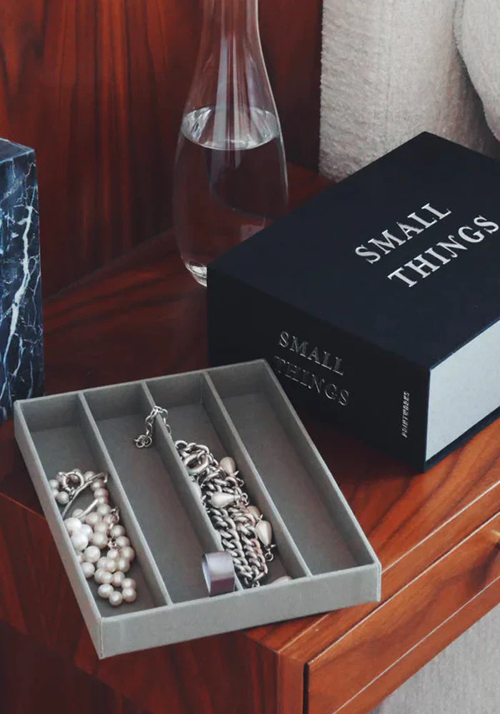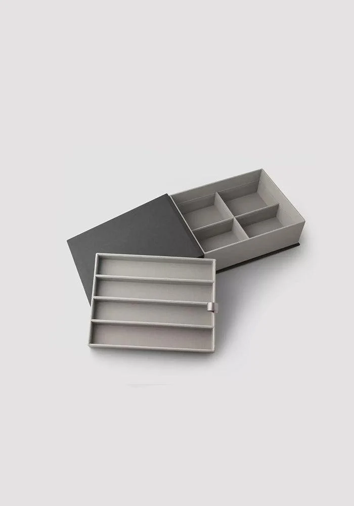 Grâce à nos nouvelles boîtes de rangement recouvertes de tissu pour un effet encore plus élégant, soyez mieux organisé. À l’intérieur de notre boîte se trouve deux niveaux de compartiments parfaits pour ranger tous vos types de bijoux qui vont sont chère.