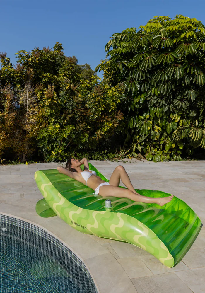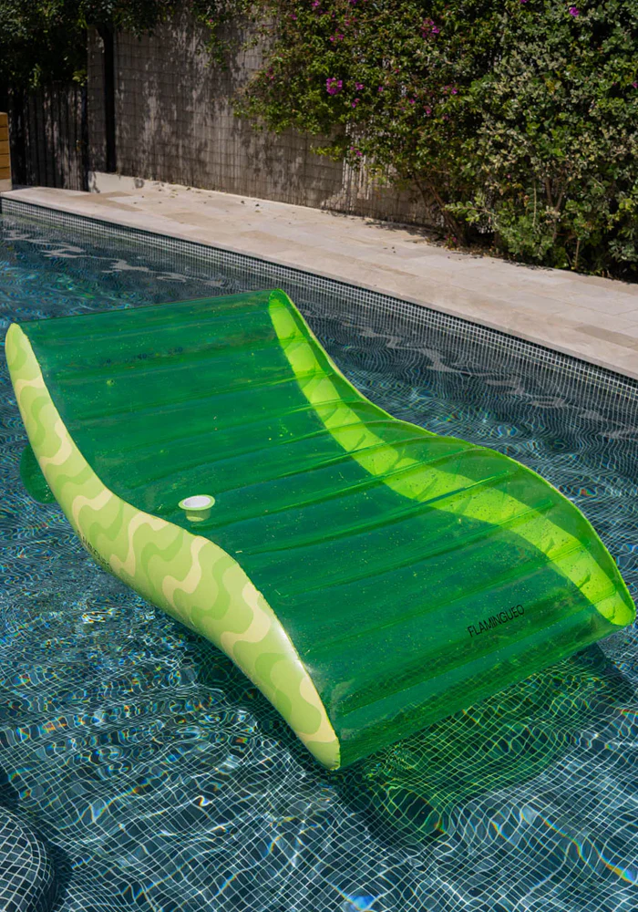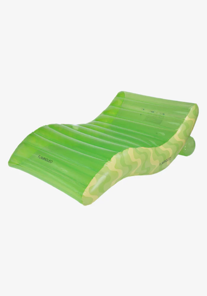 Bouée Arlo en forme de chaise longue verte. Très grande, elle est idéale pour se détendre.