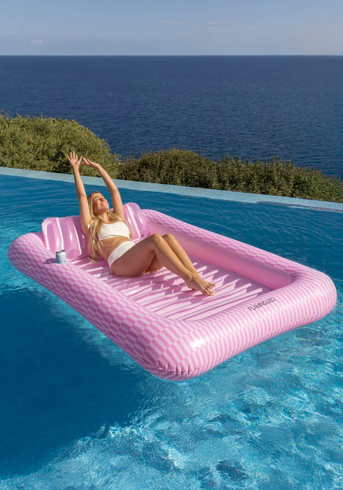 Bouée Portofino ou piscine de bronzage rose. Elle peut être remplie d’eau.
