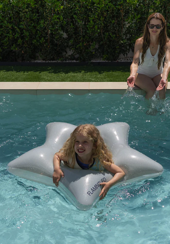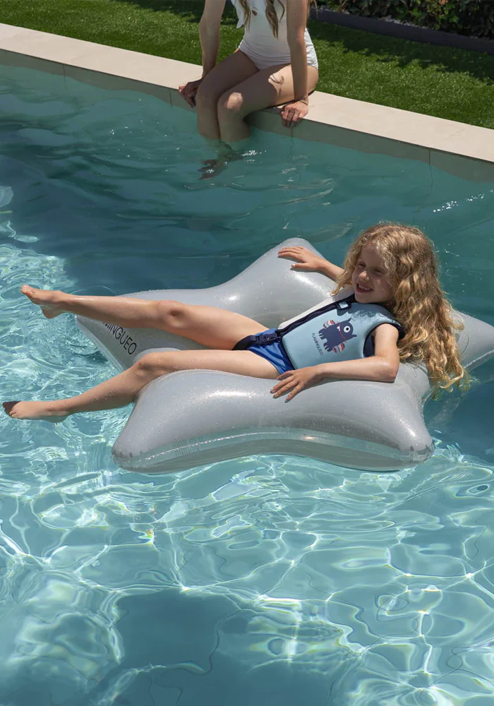 Bouée Vega en forme d’étoile argentée. Caractéristiques : PVC 0,28 mm avec paillettes Double valve Forme d’étoile Diamètre intérieur 45 cm Poids maximum de 90 kg Dimensions : 110 x 105 x 20 cm