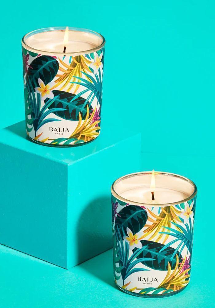 Bougie senteur Moana. Caractéristiques : Poids : 180 g Coulée et étiquetée à la main en Provence Cire sans OGM Mèche en coton Note de tête : Noix de coco Note de coeur : Vanille Note de fond : Fruité Floral