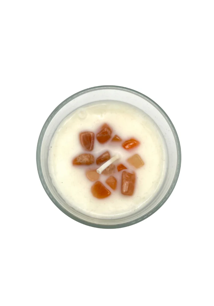 La pierre de Soleil permet d’aborder la vie avec plus de légèreté, de retrouver sa joie de vivre, sa spontanéité, sa créativité. Lorsque la bougie est consumée, les pierres peuvent être récupérées et conservées.