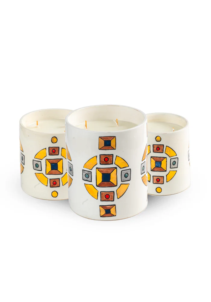 Bougie Cléopatra en céramique avec deux mèches en coton biodégradable.