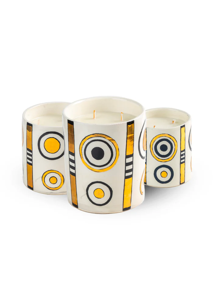 Bougie Nazar en céramique avec 4 mèches en coton biodégradables. Caractéristiques : Senteur Fleur D’oranger Matière : Céramique 100% Cire végétal Dimensions : Diamètre : 14,5 cm Hauteur : 17 cm Mèches en coton biodégradables