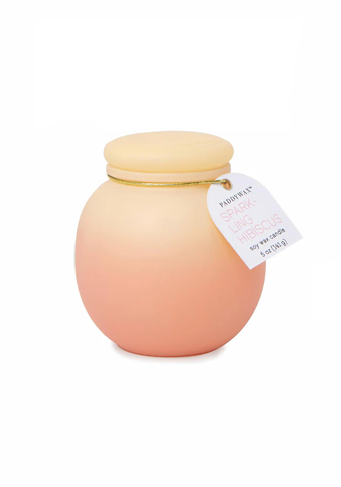 Bougie Orb ombrée dans un pot arrondi et parfumée. Caractéristiques : Contenance : 141 g Cire de soja Senteur : Hibiscus pétillant