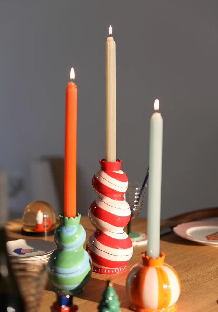 Bougie ripple type cierge coloré et strié.