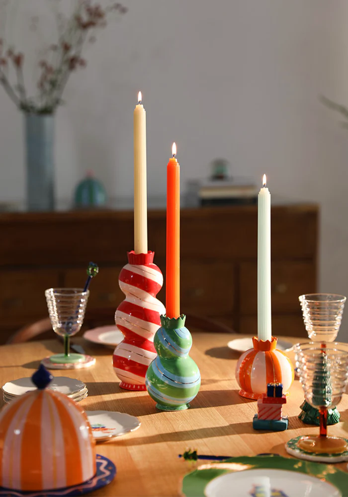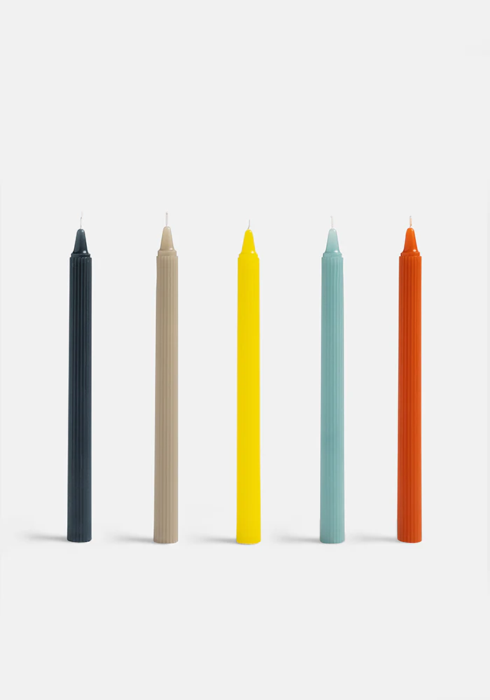 Bougie ripple type cierge coloré et strié. Caractéristiques : Bougie cierge Dimensions : environ H25 x D2 cm