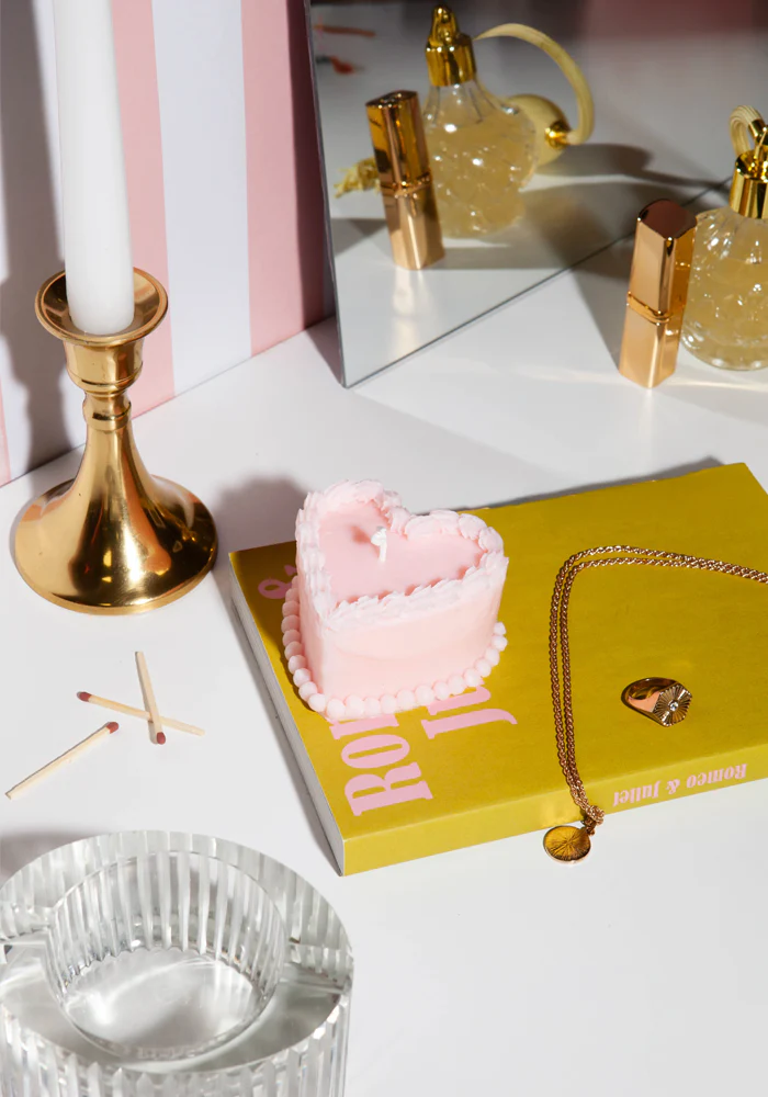 Bougie Sweetie en forme de gâteau en coeur. Caractéristiques : Bougie décorative en forme de gâteau