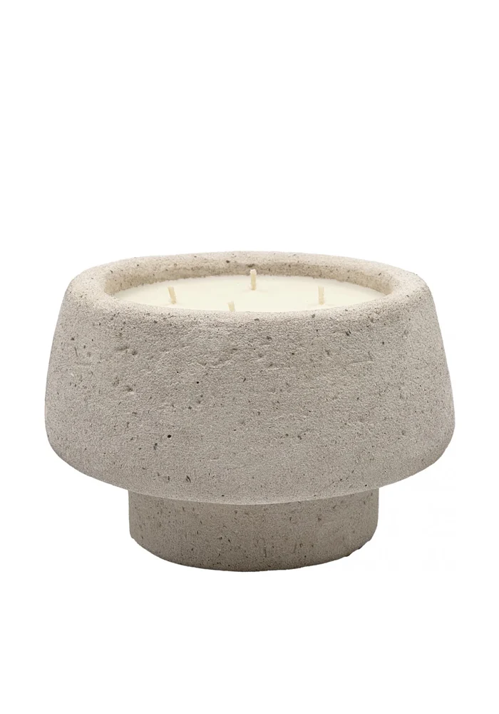 Bougie Agafay en travertin façonné à la main avec un couvercle.