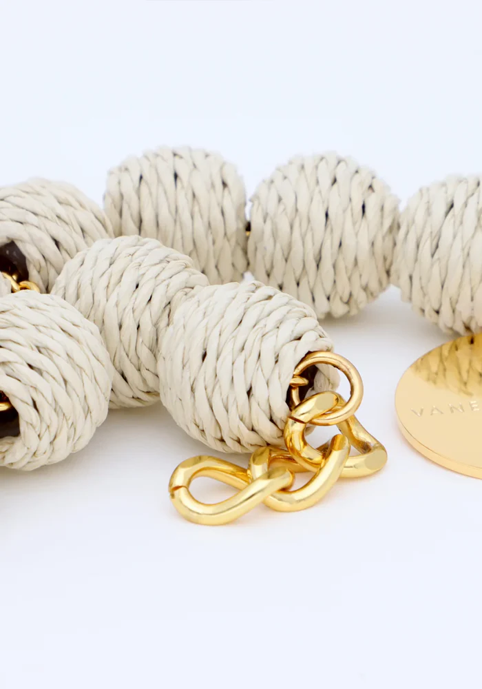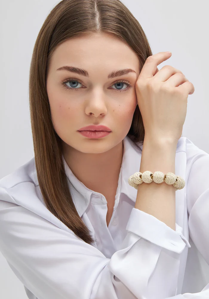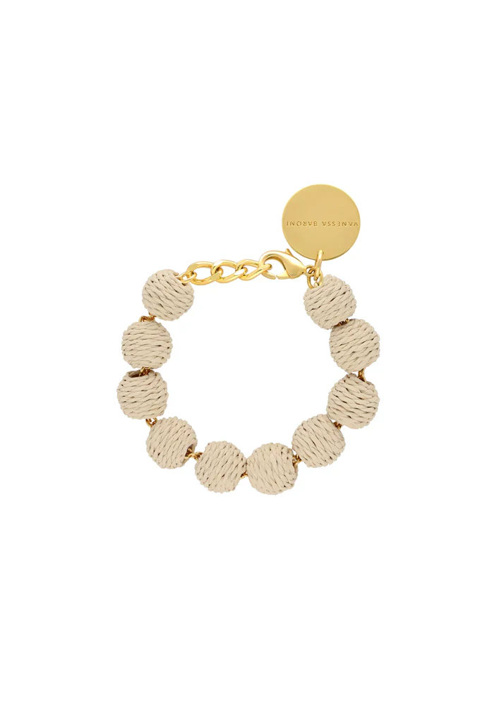 Bracelet Raffia Small Beads avec des perles rondes en raphia beige.