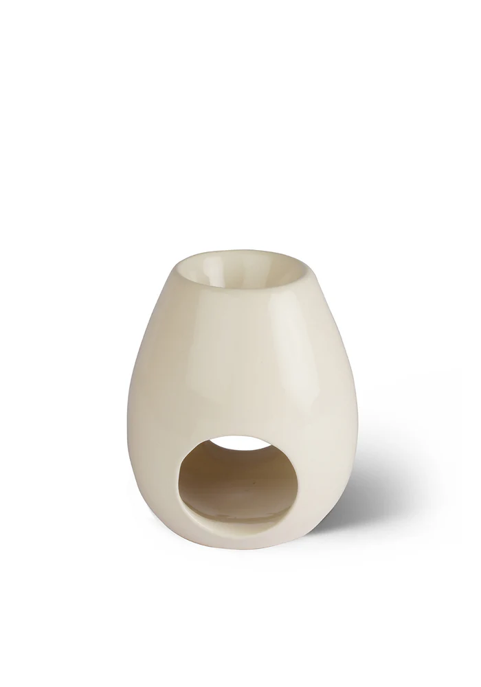 Brûleur de parfum pour huile à brûler en céramique blanche.