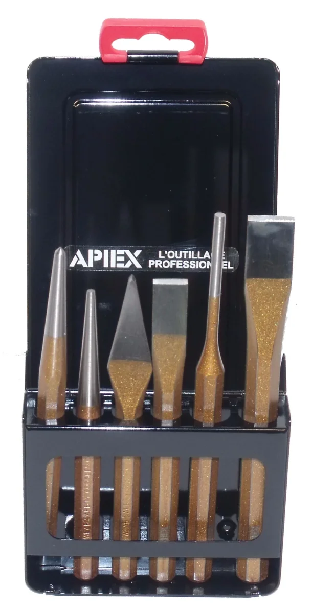Jeu de 6 outils de frappe en acier chrome molybdène.