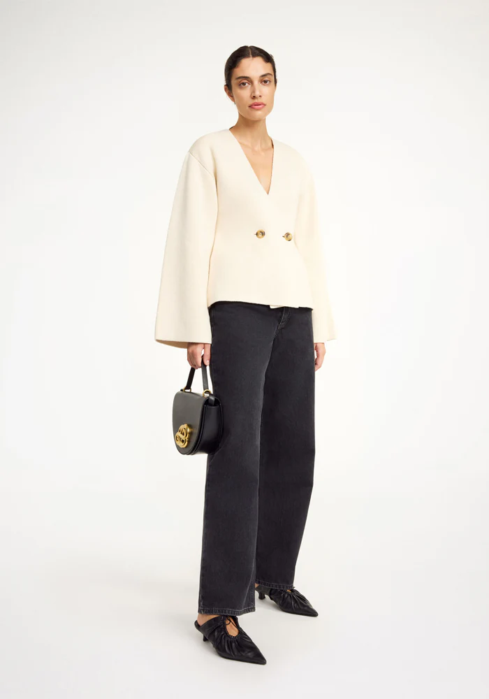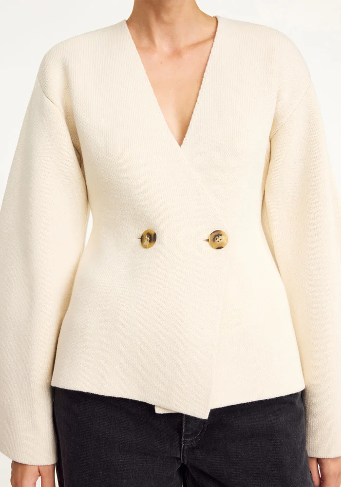 Cardigan Tinley en laine avec un encolure en V plongeante, un double boutonnage et des emmanchures basses.