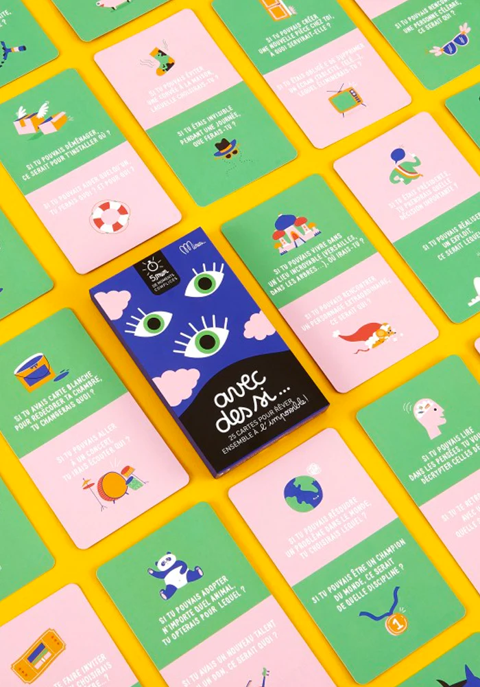 Quels choix feriez-vous si vous étiez invisible l’espace d’une journée ou si vous pouviez partir demain à l’autre bout de la planète… ? Avec des si, vous pourriez réinventer le monde mais aussi votre vie ! Chaque question vous offre 5 min (minimum) de discussion surréaliste pour découvrir quelle décision prendrait votre enfant, un ami, votre sœur… si vous pouviez imaginer l’impossible !