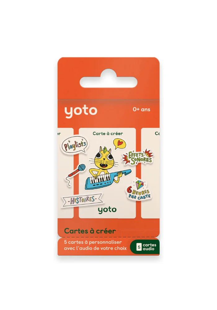 Caractéristiques : Contenu : 5 cartes audio vierges réinscriptibles Type : Cartes personnalisables Enregistrement et création de contenus audio Compatible avec : Lecteurs Yoto Player et Yoto Mini À partir de 3 ans