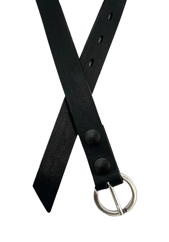 Ceinture en cuir preto noir avec une boucle simple interchangeable.