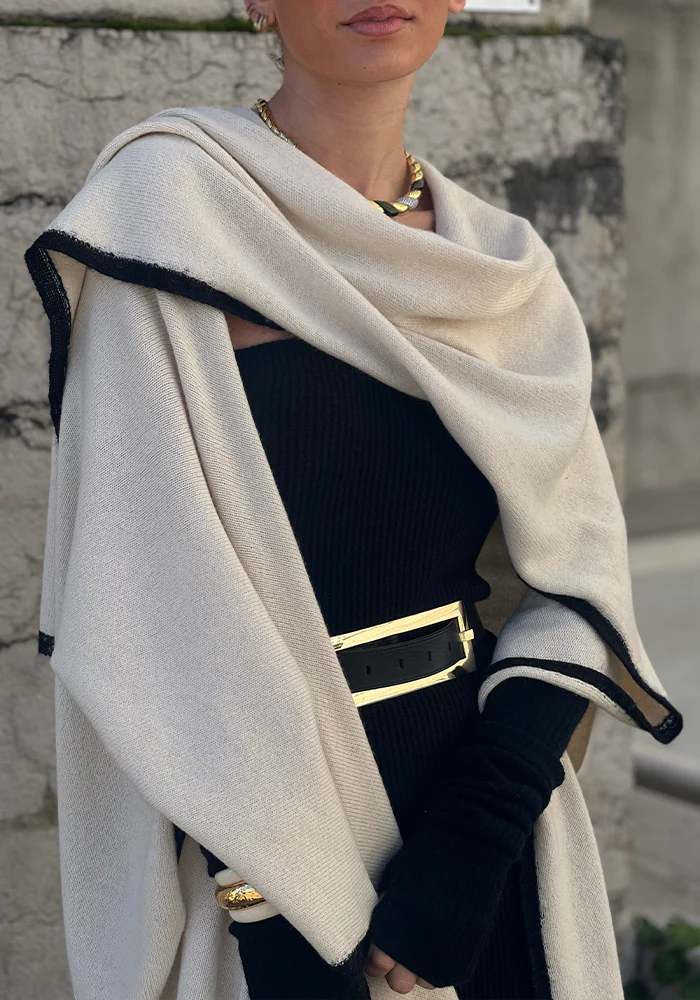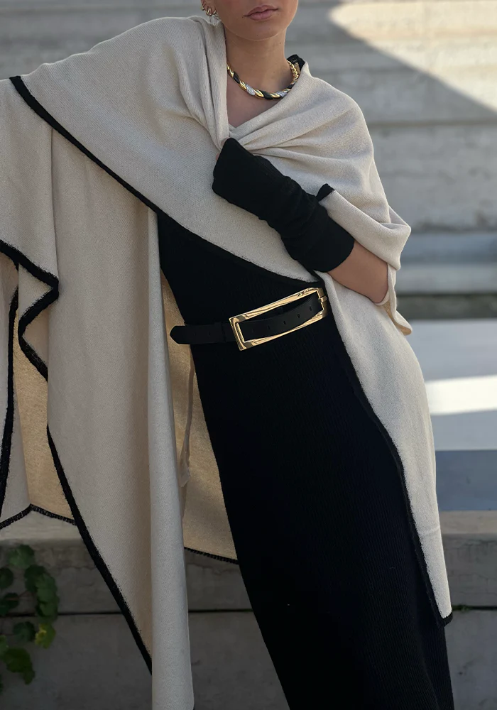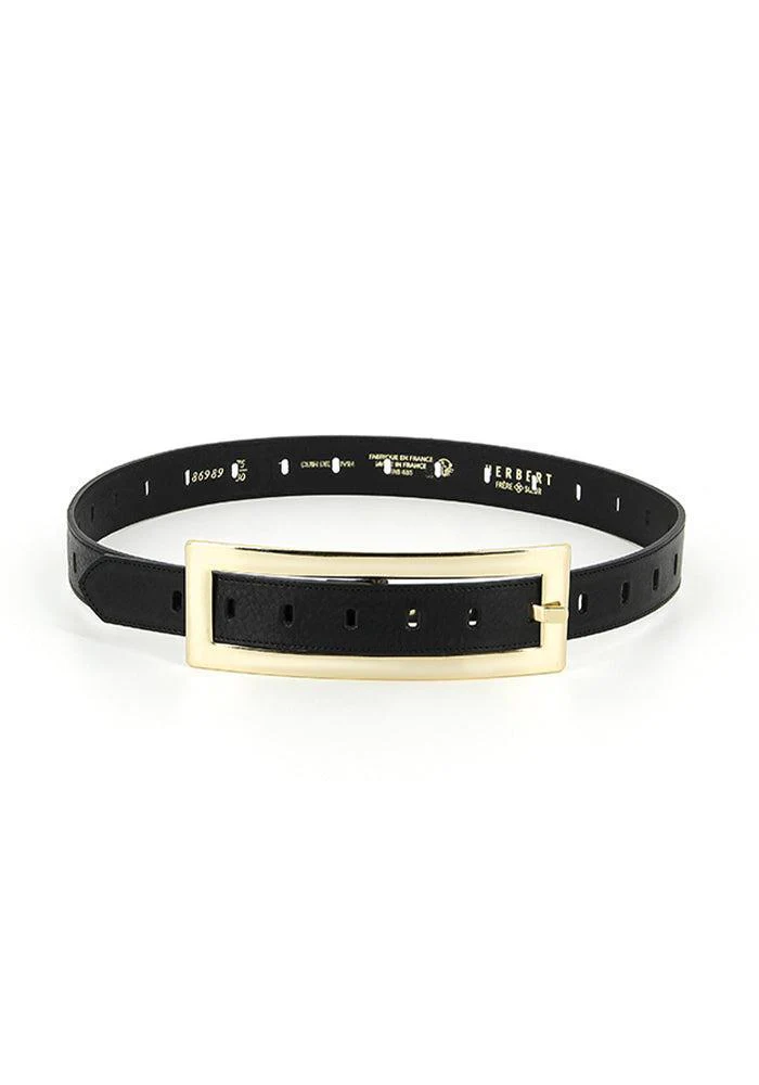 Ceinture La Métrie en cuir boucle xl rectangulaire dorée.