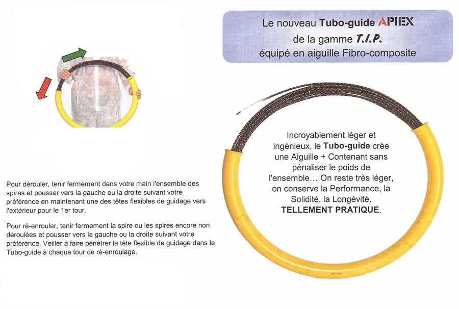 Cerceau dérouleur Tubo-guide APIEX idéalement conçu pour les aiguilles en fibro-composites de 30 m ou 50 m. Cerceau dérouleur Tubo-Guide gamme T.I.P Pour dérouler, tenir fermement dans votre main l’ensemble des spires et pousser vers la gauche ou la droite suivant votre préférence en maintenant une des têtes flexibles de guidage vers l’extérieur pour le […]