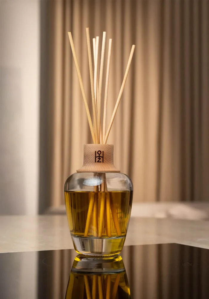 - Coffret composé d’un flacon en verre, d’une recharge de 500 ml et d’un fagot composé de 7 bâtonnets.