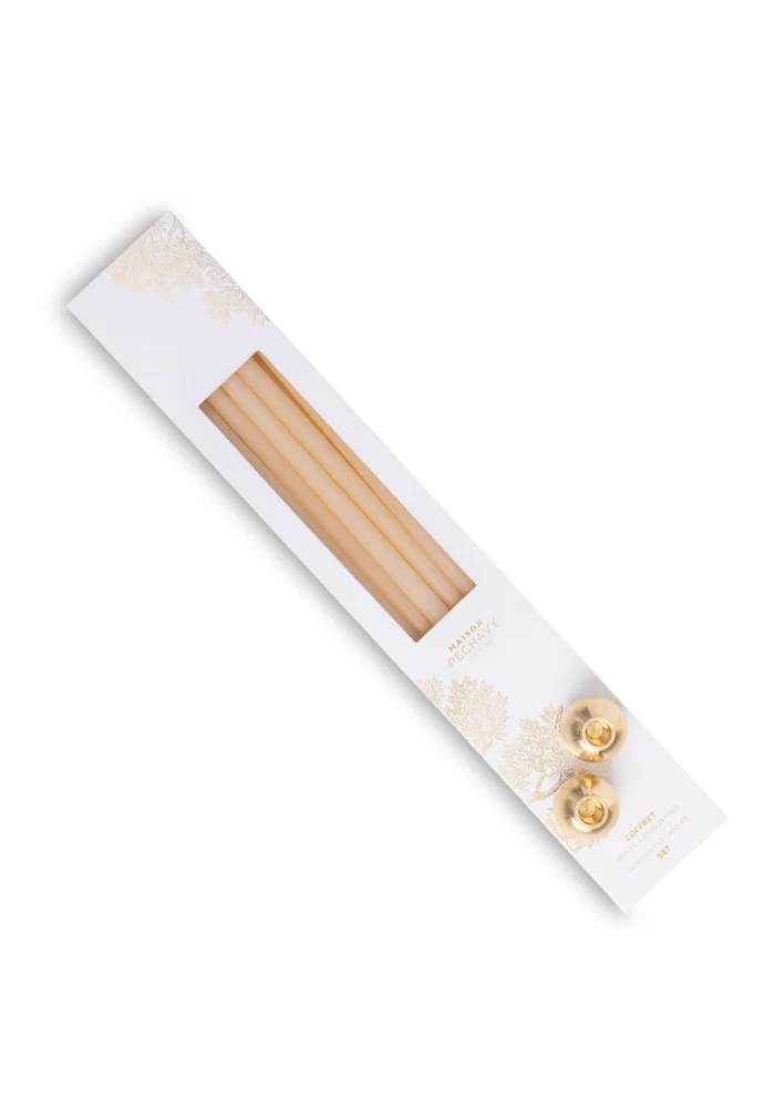 Coffret Écru Cierges Et Bougeoirs Gemmes