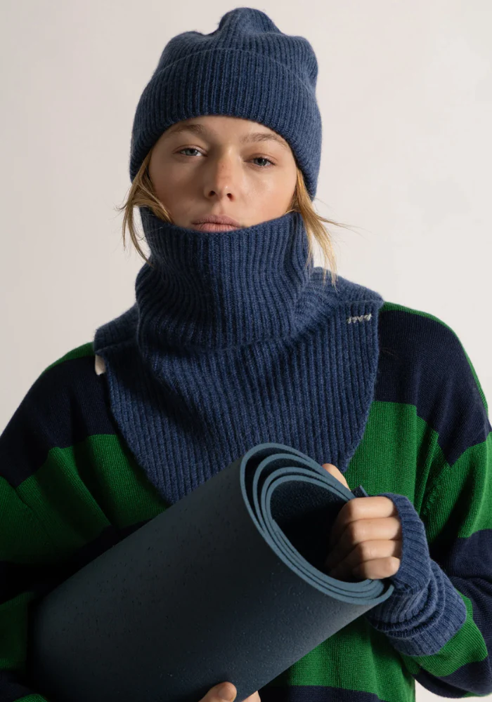 Col en cachemire 6 fils bleu denim.