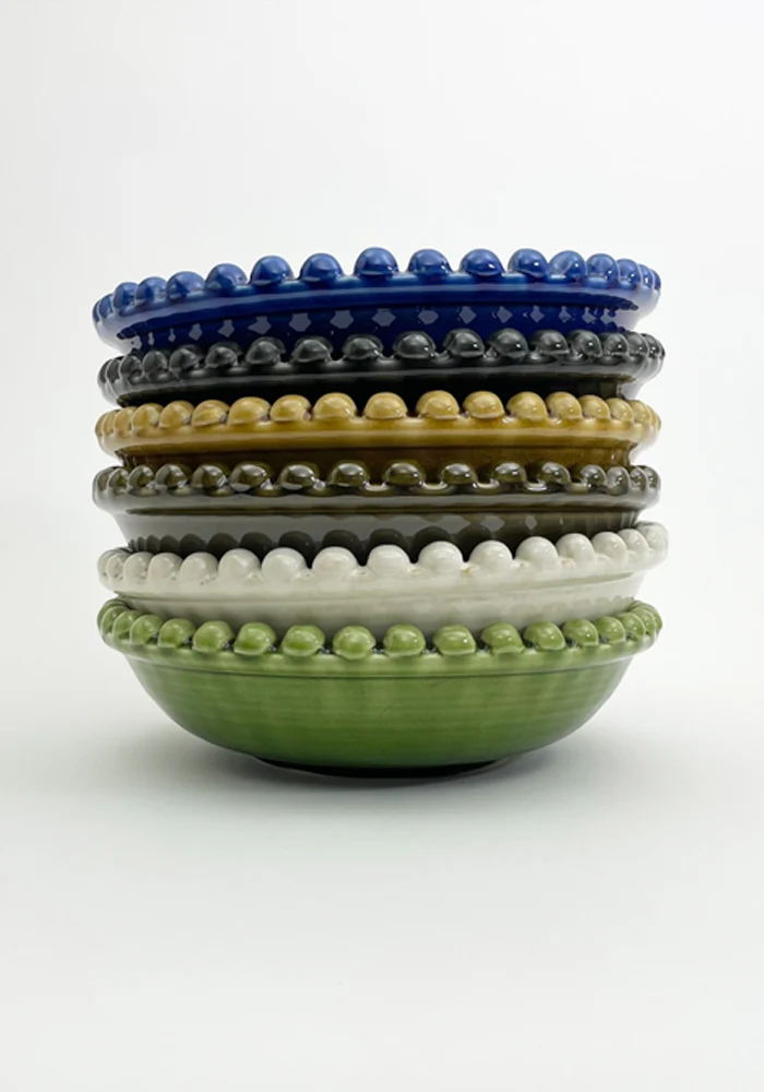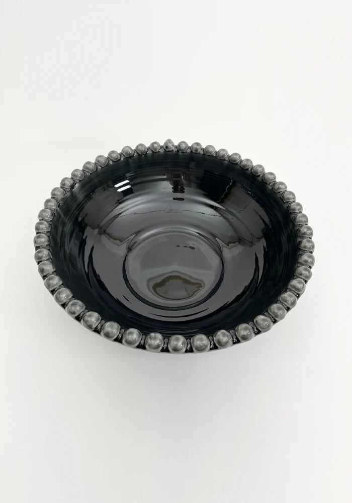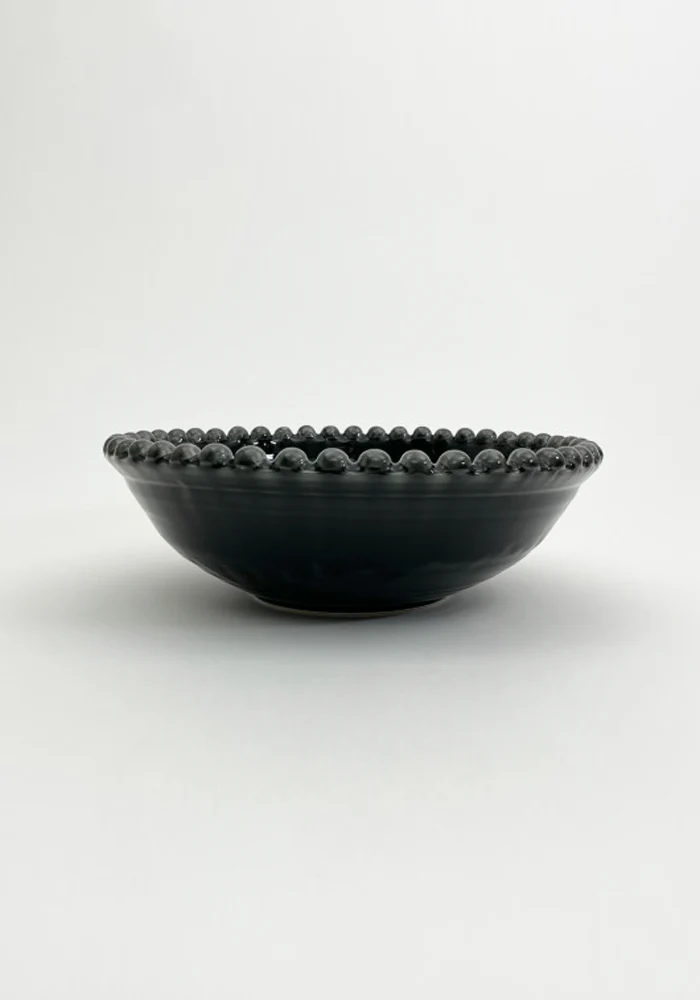 Coupe en céramique couleur anthracite avec bord orné de perles en relief.