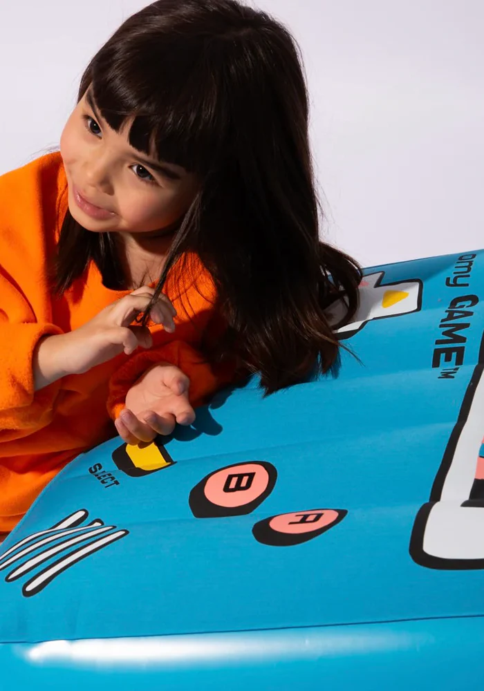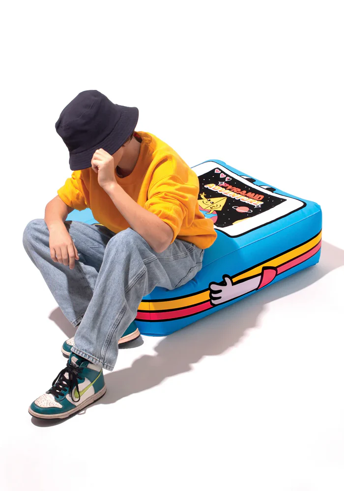 Coussin gonflable Video Game en forme de jeu vidéo. Caractéristiques : Dimensions : 80 x 63 x 22 cm Composition : PVC sans phtalates et non toxique, enduit de coton durable. Non déhoussable. Se gonfle et se dégonfle facilement manuellement ou à l’aide d’une pompe à air. Ce coussin n’est pas une bouée.