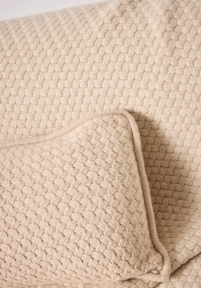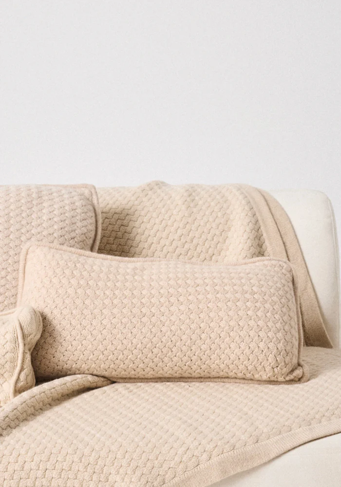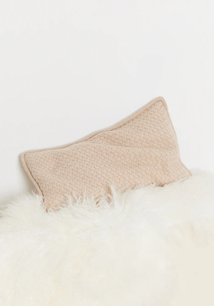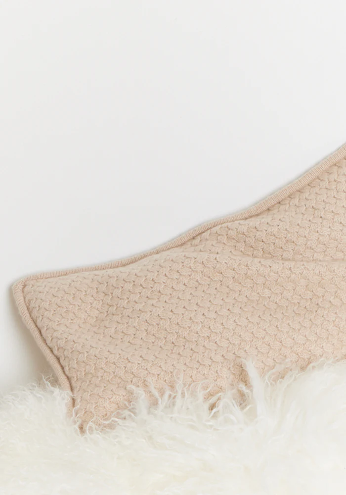 Coussin Tama rectangle en cachemire avec un motif maille fantaisie.