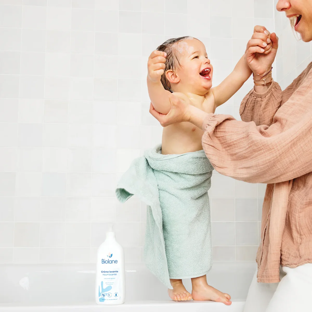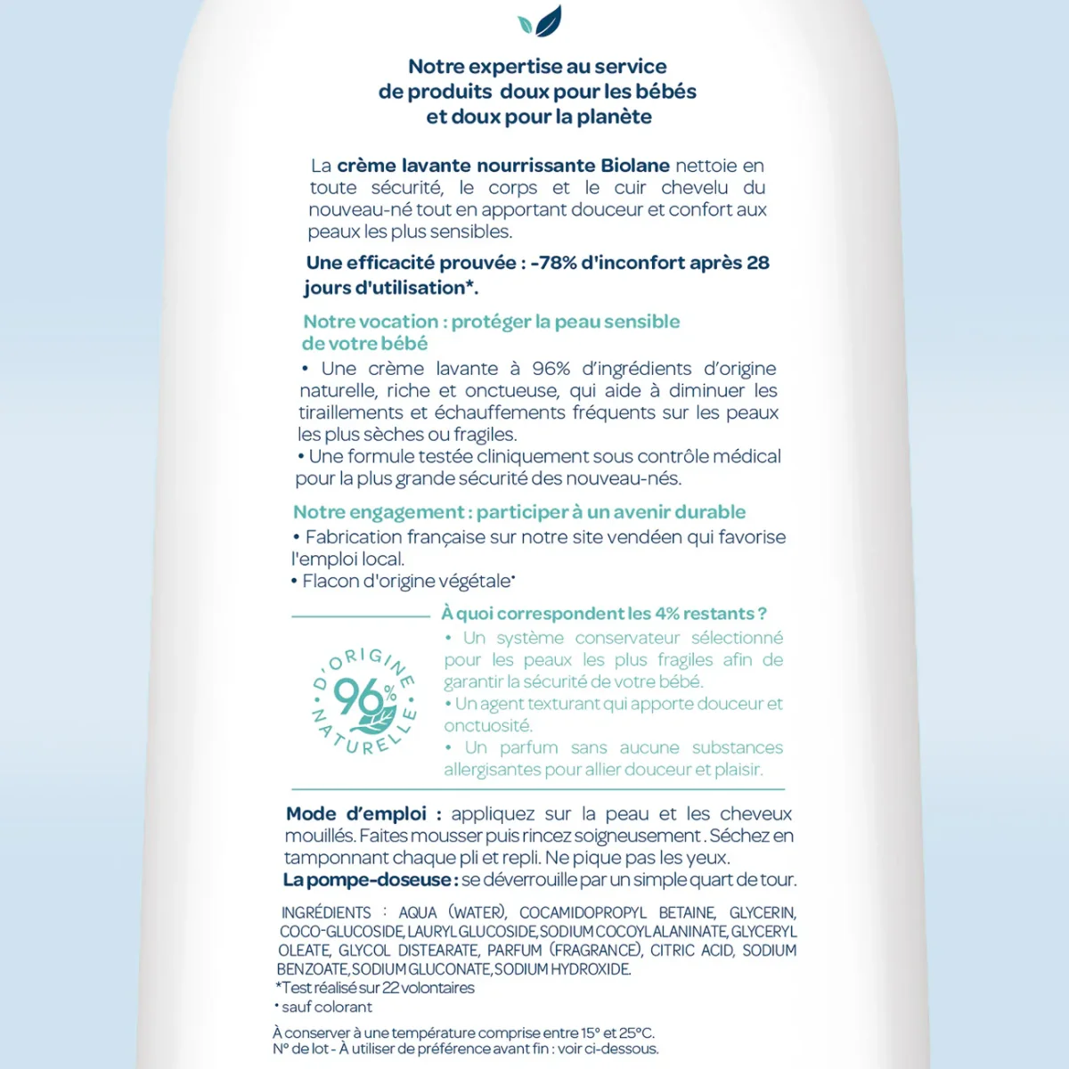 La crème lavante nourrissante Biolane nettoie en toute sécurité le corps et le cuir chevelu du nouveau-né tout en apportant douceur et confort.