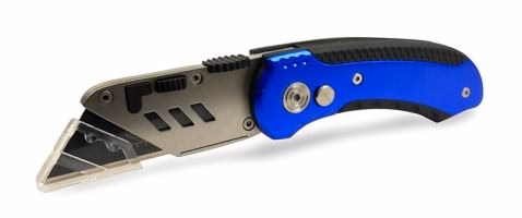 Cutter pliant à poignée ergonomique en aluminium, avec verrou de sécurité. Lames SK2 à haute résistance de 18 mm de largeur. Peut se fixer sur la ceinture. Réf lames : CUT0014