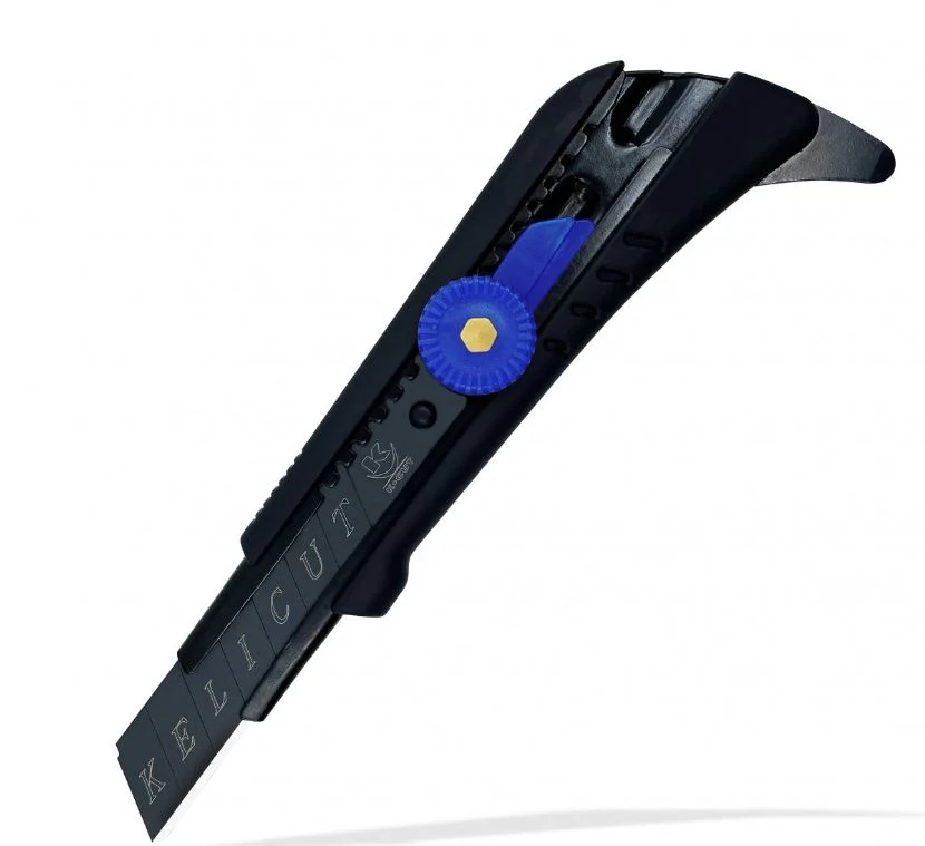 Cutter à lame sécables renforcée. L’aileron arrière en acier trempé peut faire office de tournevis. Revêtement en gomme soft touch. Réf lames : CUT0006 (ou toute lame de largeur 18 mm)