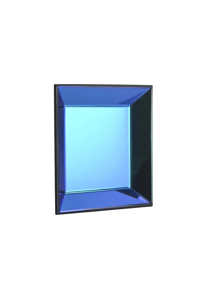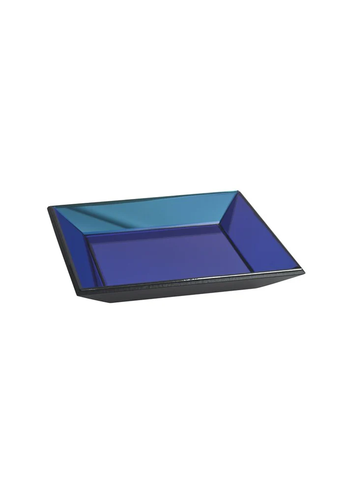 Coupelle ou décoration murale carré dans une couleur bleue iridescente avec un effet miroir.