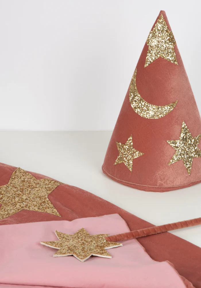 - Contenu : Cape, chapeau et baguette magique