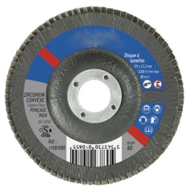 Disque à lamelle au zirconium ø125 mm sur support en fibre convexe.