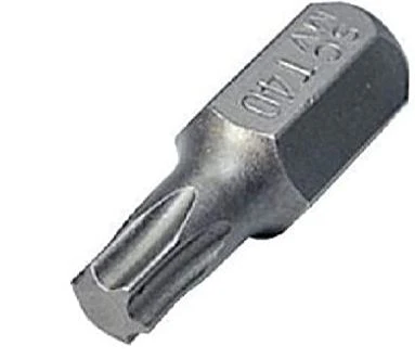 Embout industriel de vissage à empreinte TORX C 6.3/E 6.3 Longueur de 25mm. Pour les tailles intermédiaires, voir embout TORX percés (ref : EMB0023/24/25/26/27/28/29)
