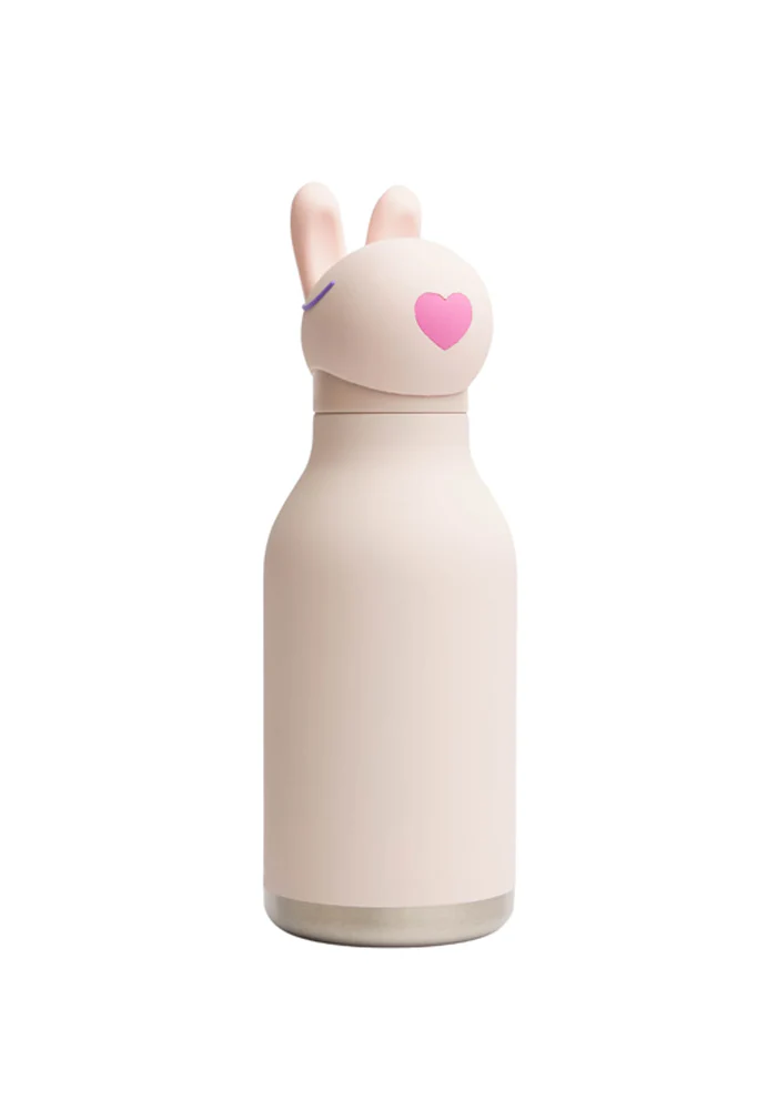 Gourde isotherme Lapin en acier inoxydable avec une tête de lapin amovible en silicone.