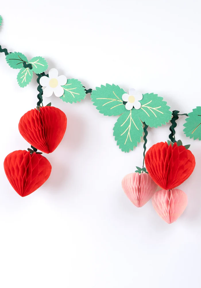 Guirlande avec des fraises en 3D en nid d’abeille.
